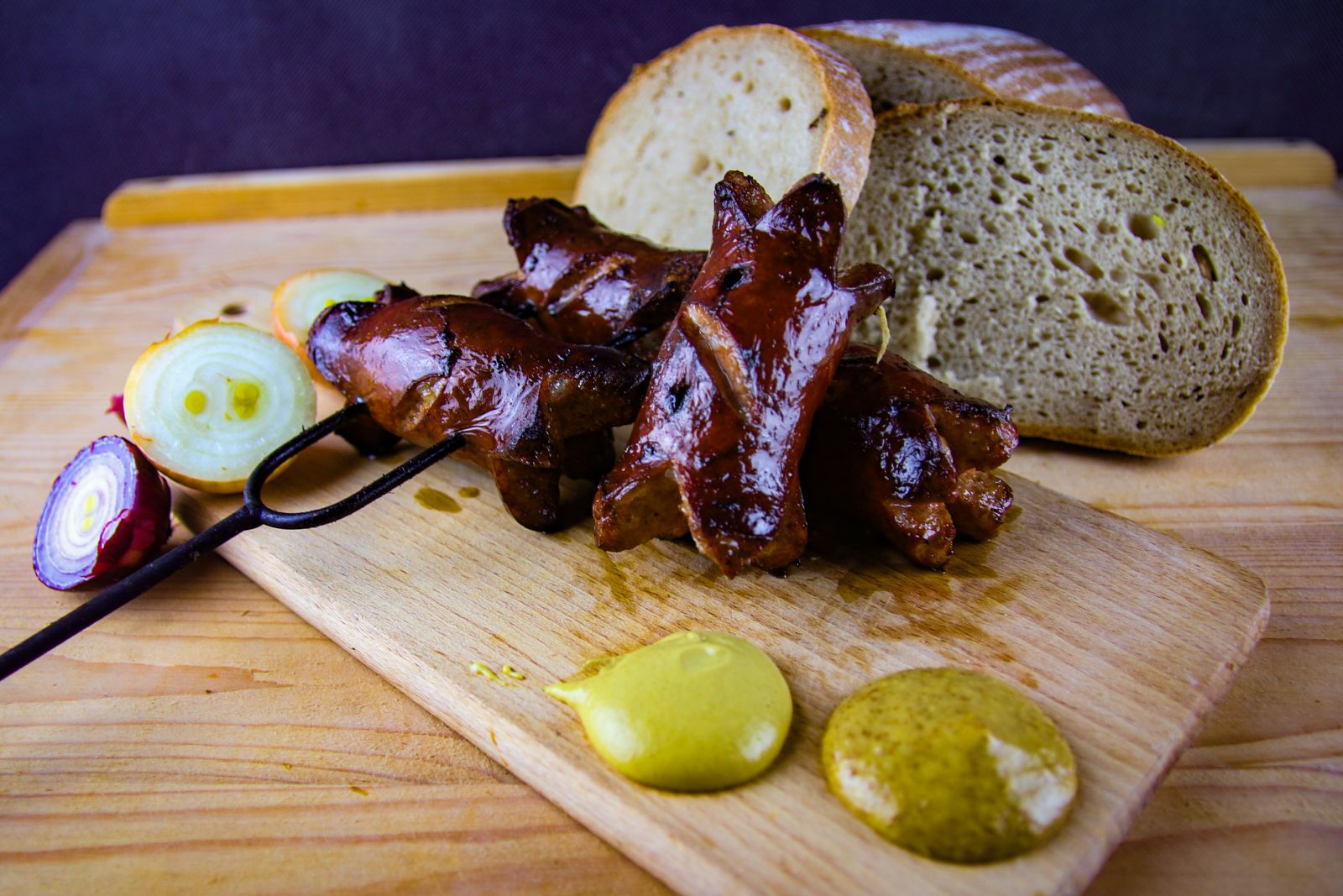 Tradiční uzenářský výrobek ručně vázaný v přírodním střivku.